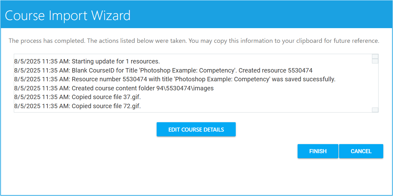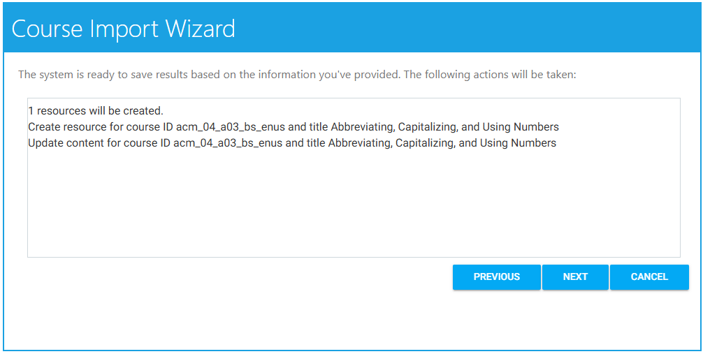 Once completed, click the Next button. This will initiate the course import.