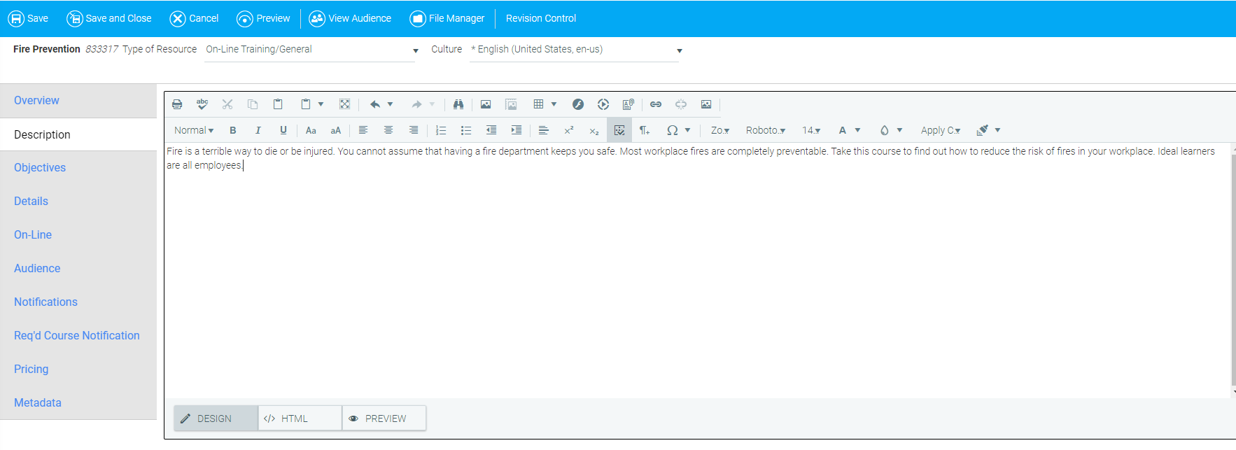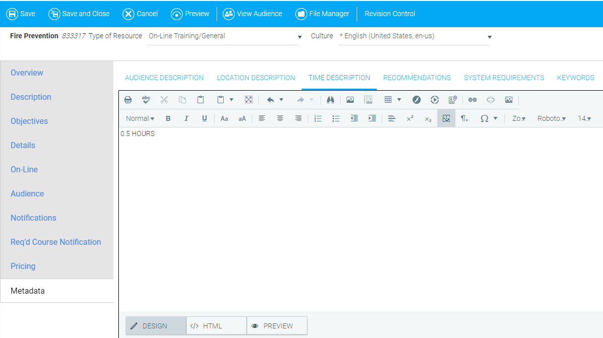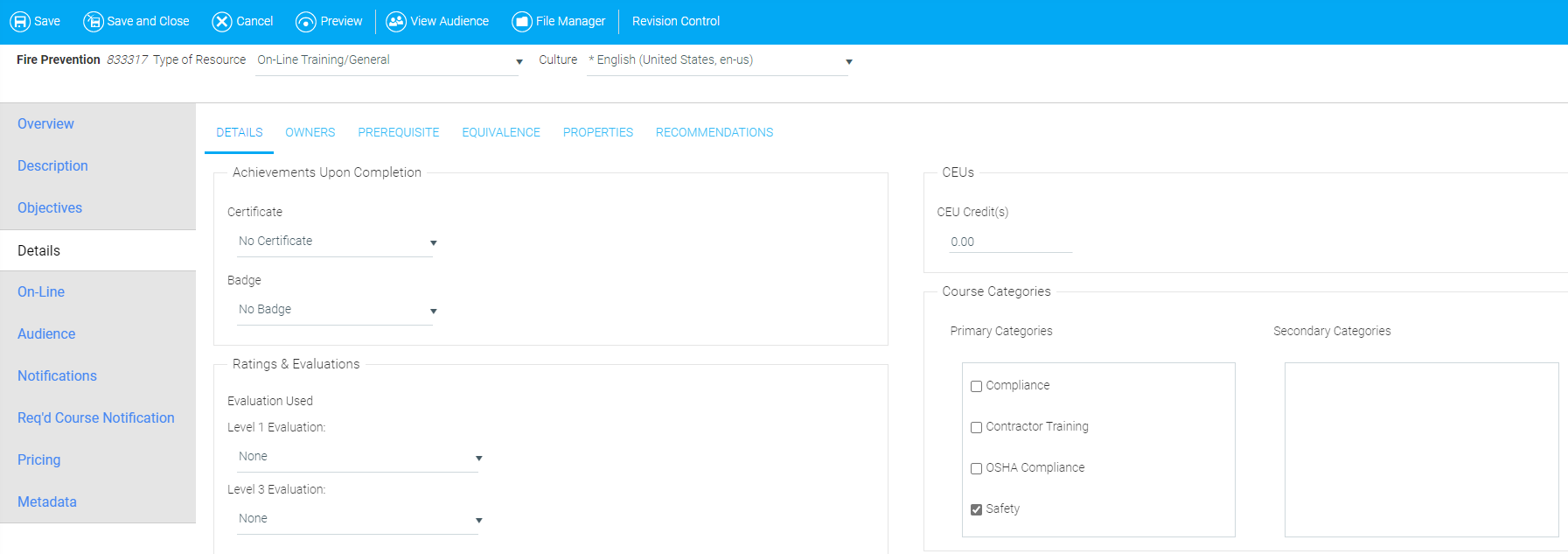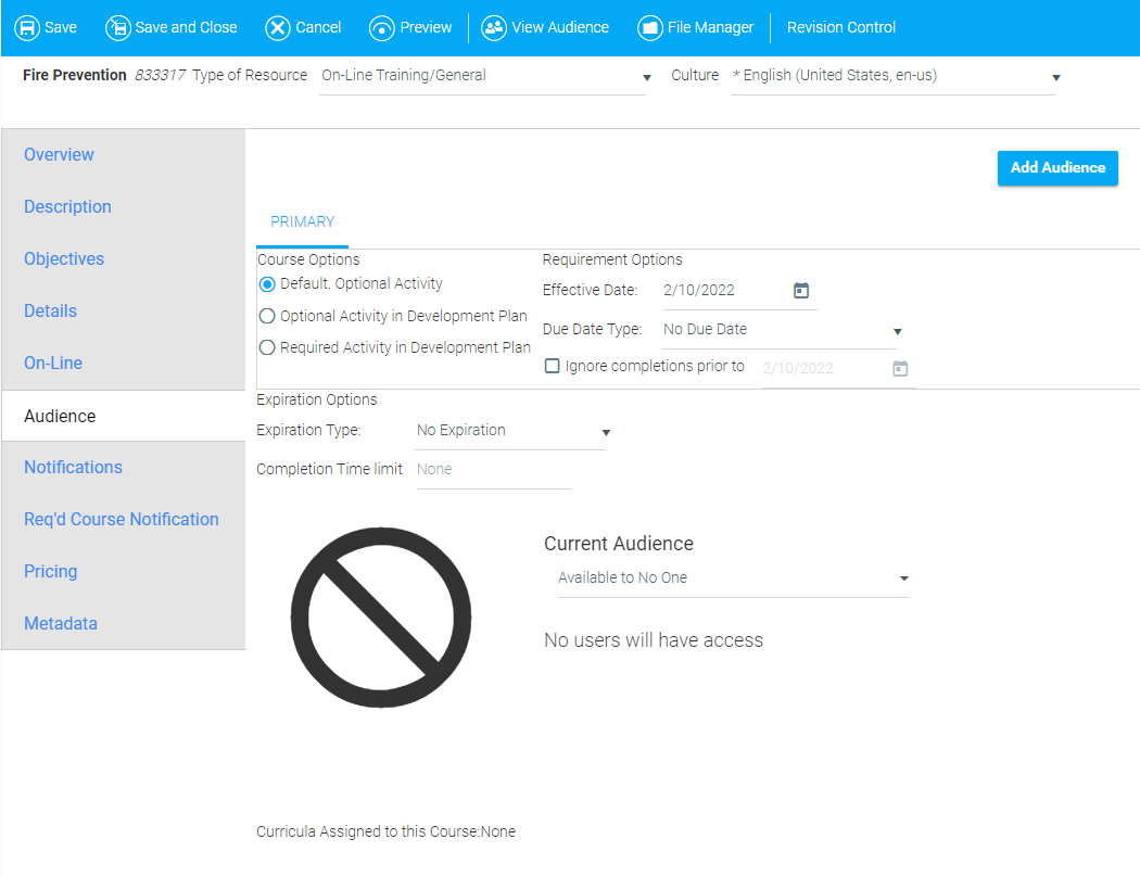 If you would like to set the Primary audience for this course using an Audience Template, select the desired audience template from the Audience Template drop-down.