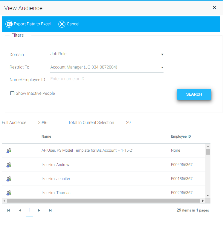 Once you have assigned an audience to the catalog, you will have the ability to: