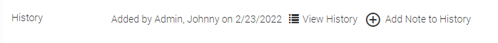Once the catalog has been saved, the History buttons will appear. Click View History to see a list of changes made to the catalog. Click Add Note to History to leave your own note to be displayed in the catalog's history.