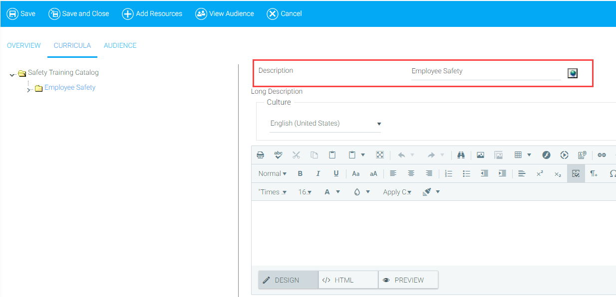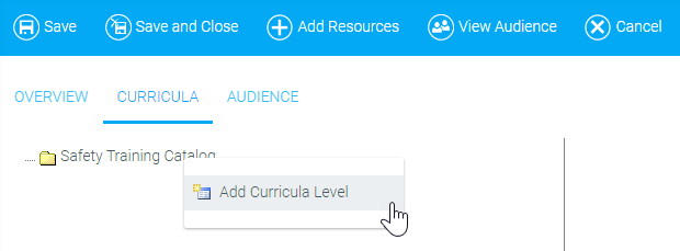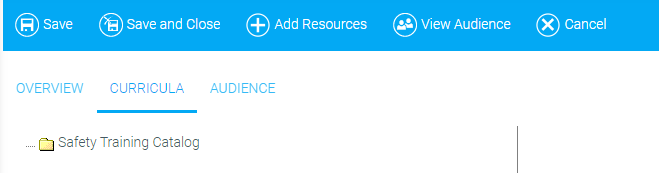 The Audience of the Course Catalog must be defined before you can add resources to the curricula.