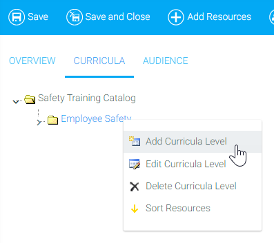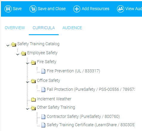 Once the structure is complete, click the Add Resources button to begin adding courses to the curriculum.