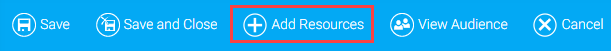 If you do not see the Add Resources button, click Save to refresh the screen. The Add Resources button is only visible once an audience has been created and saved.