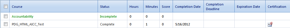 A certificate of completion can only be loaded for a for a user that has a Complete status in the course. To load the certificate of completion, click on the certificate icon next to the user's completion.