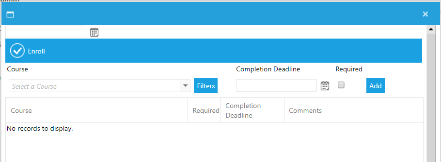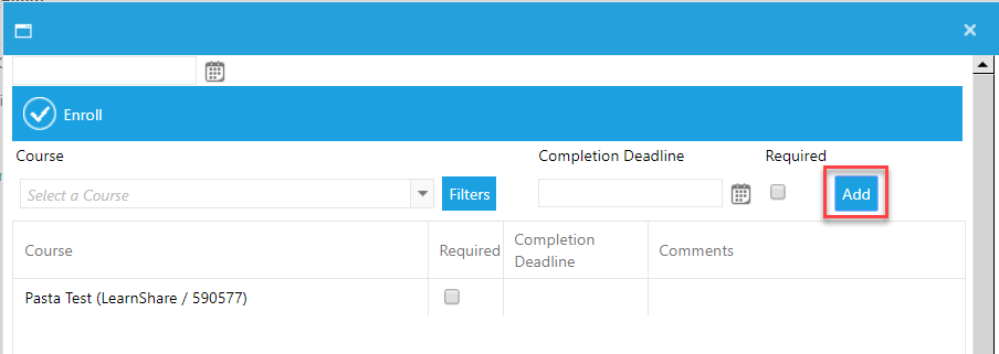 If each of the courses has a different completion deadline, the deadline can be set in the results grid once the course has been added. The Required box can also be checked and any necessary comments can be added.