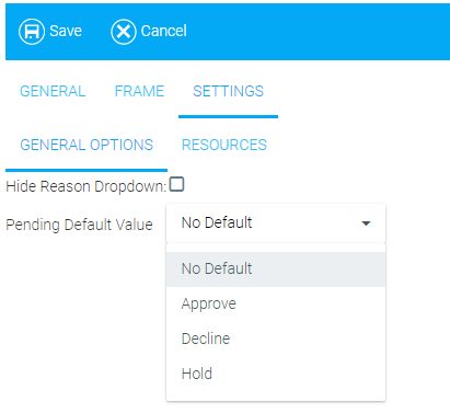 - This option requires additional configuration. If the Reason Dropdown has been configured for your implementation and it is referenced in the Resources tab for the Pending Approval Repeater, this checkbox will be available. Please contact the Support Team to inquire about implementing this feature to your system.