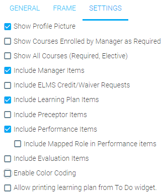 - Select this for the To Do List to include resources that are listed on the Learning Plan. If this is unchecked then the list will only display Performance Items. This is checked by default.