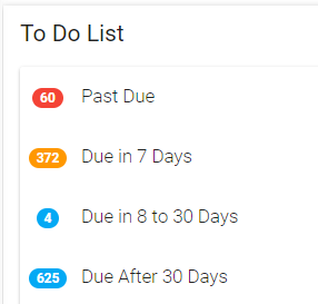 When timeboxes are added, the To Do List changes to a view of due-date categories such as Past Due, Due in 7 Days, etc.