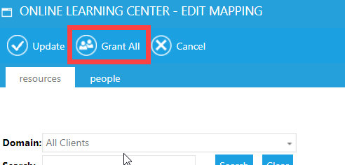 Again, the "Grant All" option automatically maps the user to all levels of all domains thus ensuring that they will be able to view all users in the LMS.