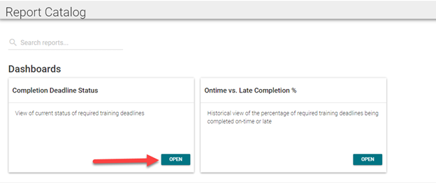 From the Report Catalog, select the dashboard you wish to view and click Open.