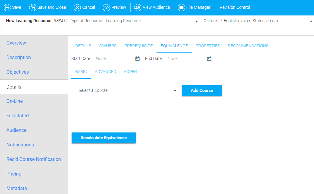 You can use this feature to assign equivalent courses to the learning resource. This means that when a user completes the equivalent course, this resource will also be marked complete.