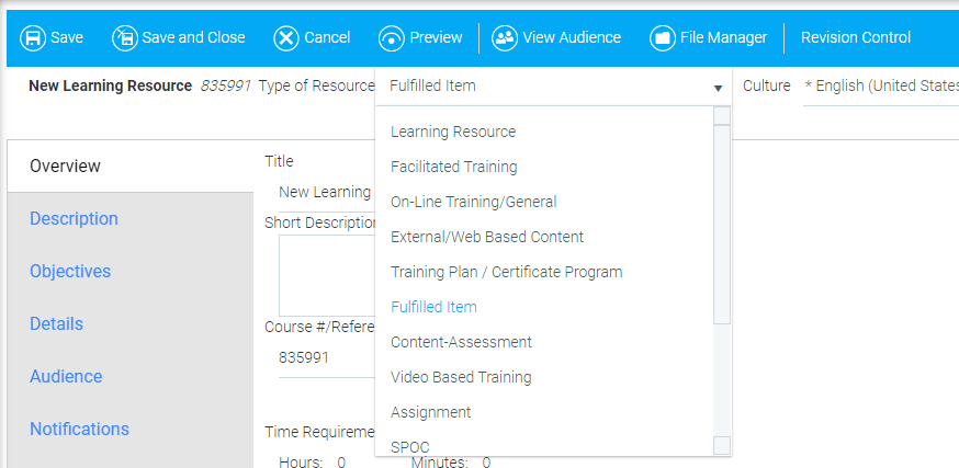 To create a Fulfilled Resource, go to Resources > Maintain Learning Resources and click New.