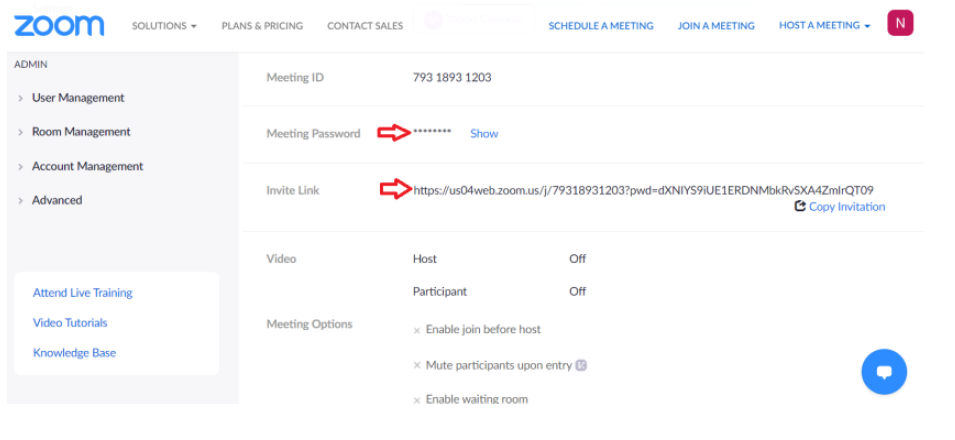 Copy and paste the password and URL for the meeting session that was set up in Zoom or Microsoft Teams in the URL field. See the example below: