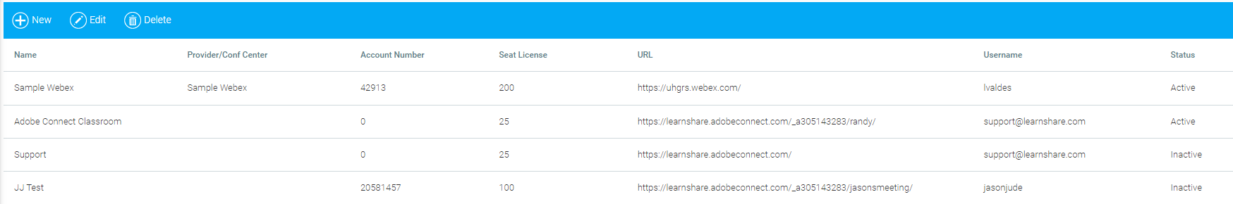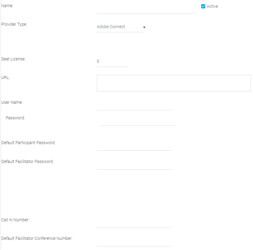 Virtual Classroom Providers are services such as WebEx and Adobe Connect, that provide online classroom meeting spaces. To add a new provider, go to Tools > Maintain Virtual Classroom Providers in the Administrative Console.