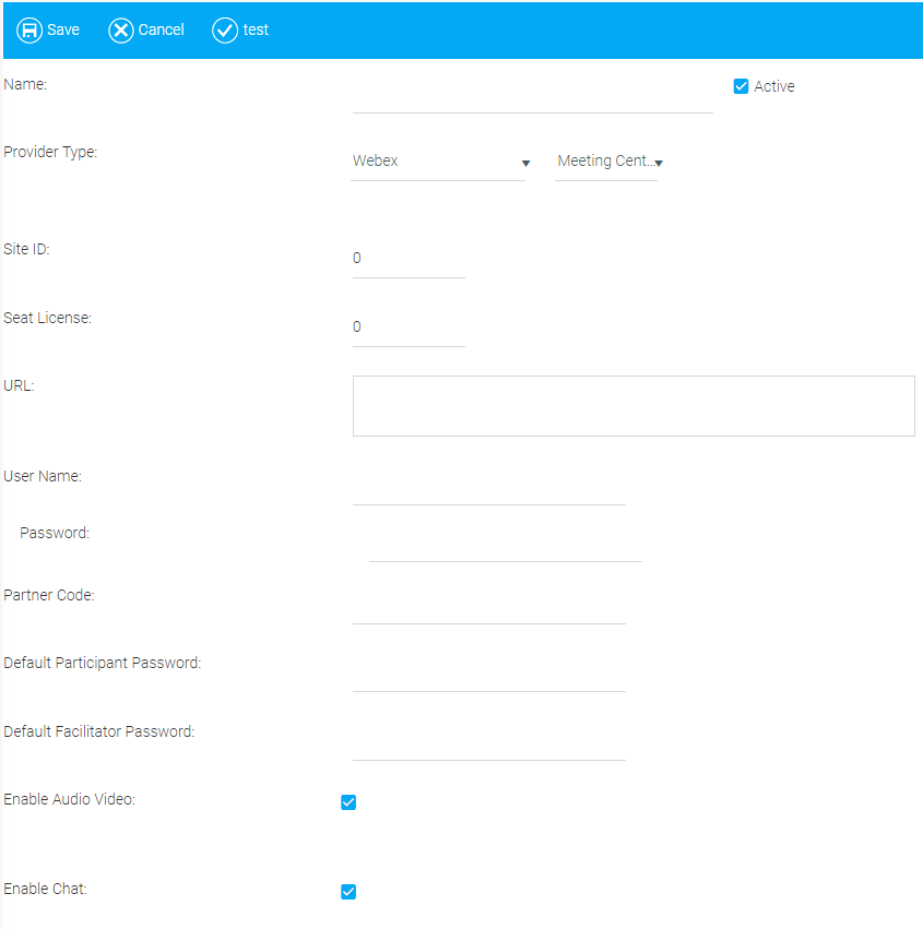 Since multiple WebEx accounts are supported, you can set up separate Provider records for each account and use them for different groups within your organization. If this is the case, you may want to enter something different in the Name field for each Provider record, for example "WebEx - Sales" and WebEx - Support".