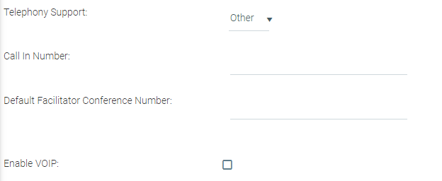 Optionally, you can enter a conference line number for attendees to use to phone in, or enable VOIP for calling in via computer.