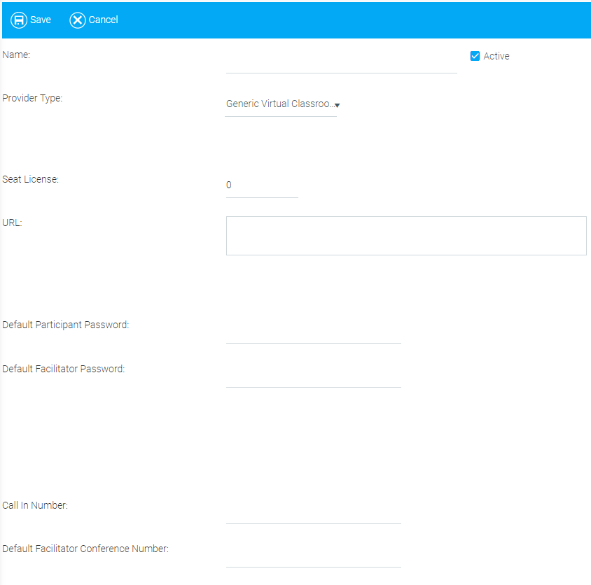 Select the Generic Virtual Classroom as the Provider Type, and then fill in the required information.