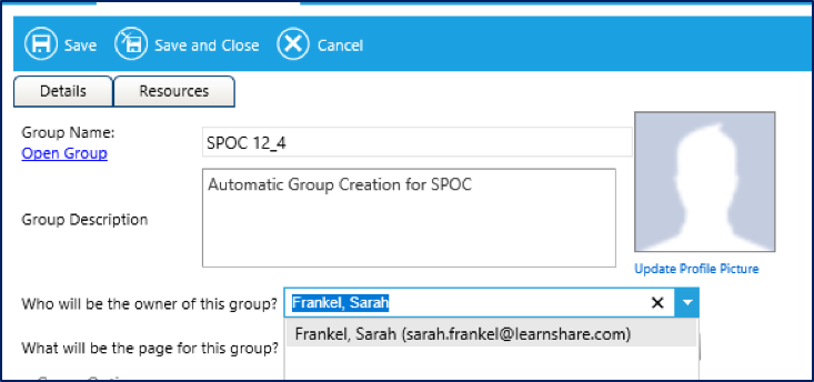 The listed group owner is the person that has the ability to create announcements for that SPOC group. To change the group owner, highlight the name of the group and click the Edit button in the top toolbar.