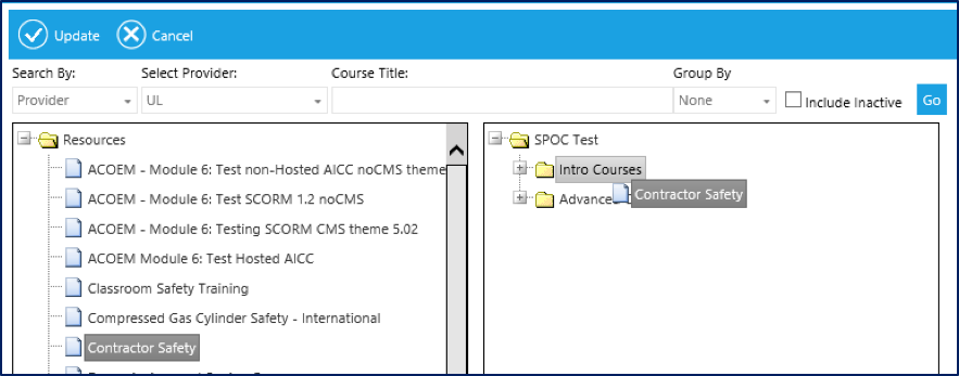 When the SPOC set up is complete, click the Save and Close button in the top toolbar to return to Maintain Learning Resources.