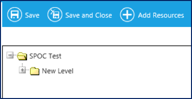The top folder is the name of the SPOC resource.  This cannot be changed on this screen.  The next level folder will initially default to “New Level.”  This name will be visible to learners, and you should change it.