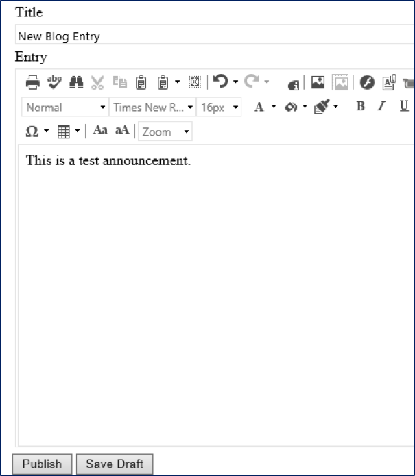 If the announcement is not done, you can also click Save Draft to save your work.  A draft can be accessed on this tab at any time.