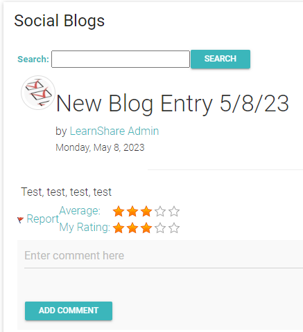 This widget allows a user to view all of the blog posts that they are authorized to view, and to rate and comment on them.
