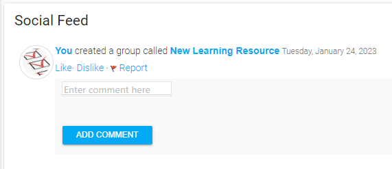 The Social Feed widget allows the user to see all recent activity (status updates, etc.) by the people they are following.  The Social Feed will also show the user’s own activity.