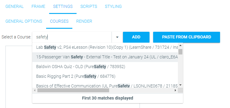 If you need to add a large number of courses, use the Paste from Clipboard option.