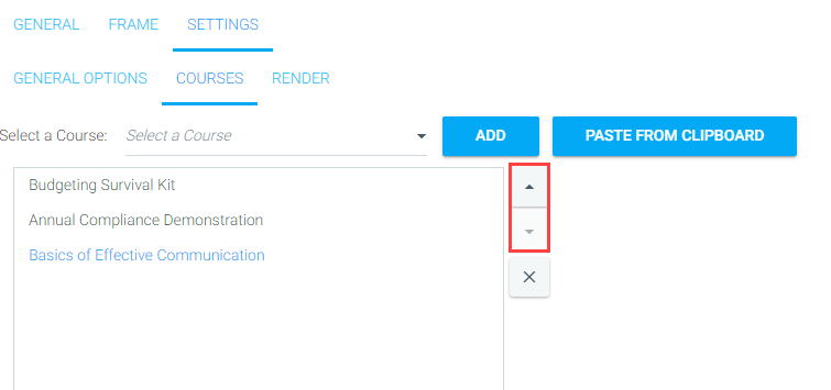 The courses will appear in the widget in the order that they were chosen.  Use the arrows at the right to reorder the courses, if desired.