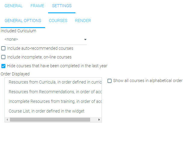 Make a selection from this list to determine the order in which courses are displayed on the widget.  The current available options are: