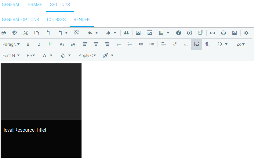 The Render sub-tab allows you to format how the selected courses will display to the user.  The rich text editor on this sub-tab allows you to include images, links to documents, change font styles, etc.  See Using the Rich Text Editor for more information.