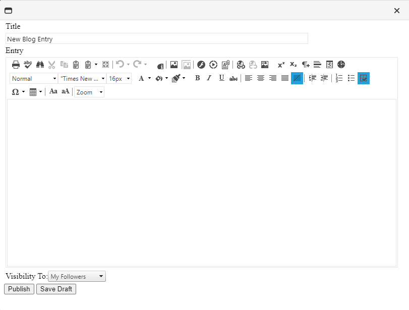This widget gives any user with access the ability to create a new blog post or edit one of their existing posts. The blog owner can determine who is allowed to view the blog.