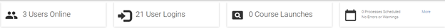 The Scheduled/Errors & Warnings widget shows any errors or warnings that have occurred within the LMS, as well as any upcoming reports that have been scheduled.