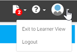 The Profile icon allows you to exit back to the Learner View or to log out of the LMS completely.