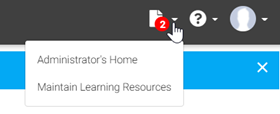 The Multi-Screen Navigation icon, which looks like a piece of paper, only appears if additional pages are open besides the Administrator's Home.  Clicking on the down arrow will show each page that is currently open.  In the example below, the user has opened the Maintain Learning Resources screen.  The number shown in the red circle indicates the number of pages that are currently open.  If you close all of the open pages, the entire icon will disappear.