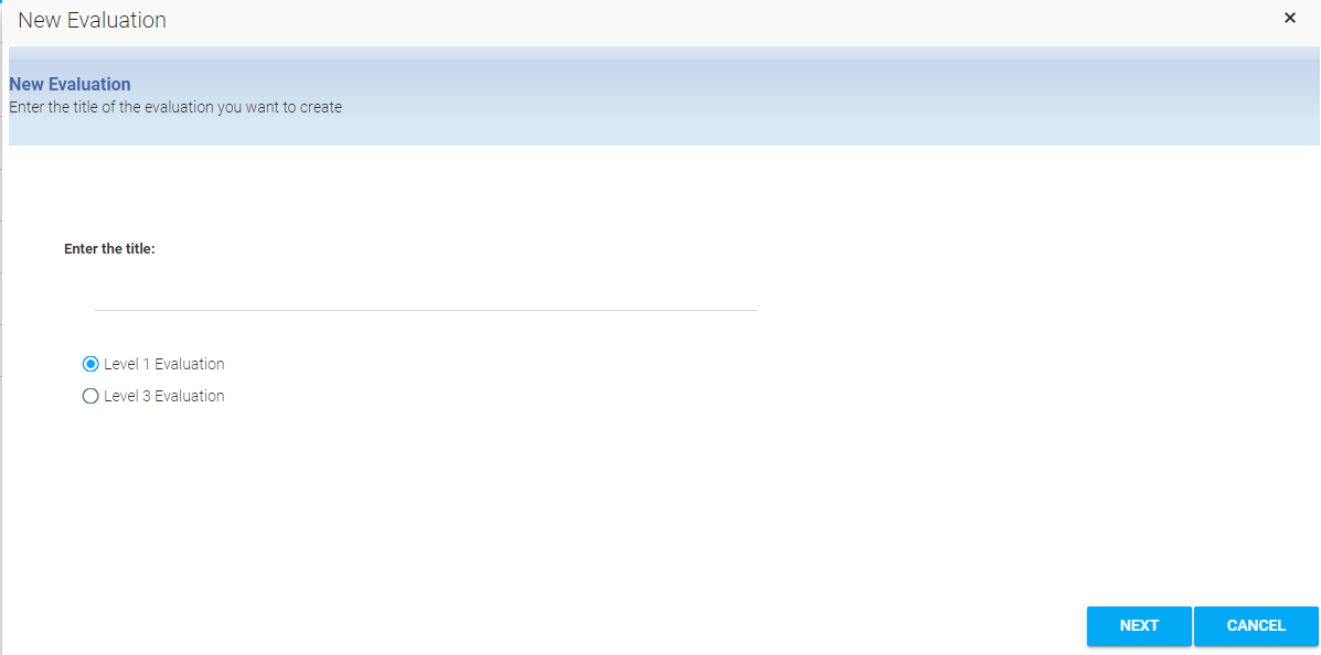 Select if this evaluation should be used as a Level 1 or Level 3 evaluation.