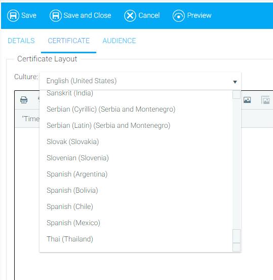 Once you are done, click the Certificate tab. Use the Rich Text Editing tools to create and format content for the Certificate.