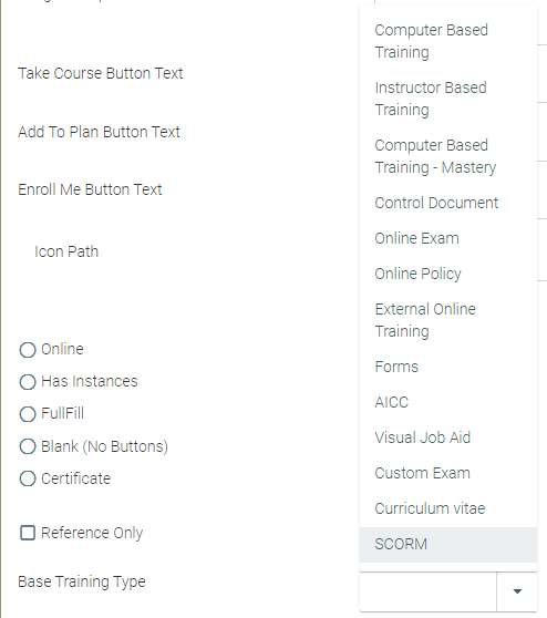 Make a selection from the Base Training Type drop-down menu that is appropriate for your media type.